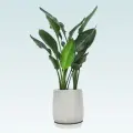 ストレリチア属の観葉植物になります。オレンジ色の花を咲かせることもあり、その花の姿が極楽鳥という鳥に似ていることから、「極楽鳥花(ごくらくちょうか)」の愛称で呼ばれたりします。どことなく、植物の雰囲気も、鳥が大きく翼を広げて、羽ばたくような姿形をしています。